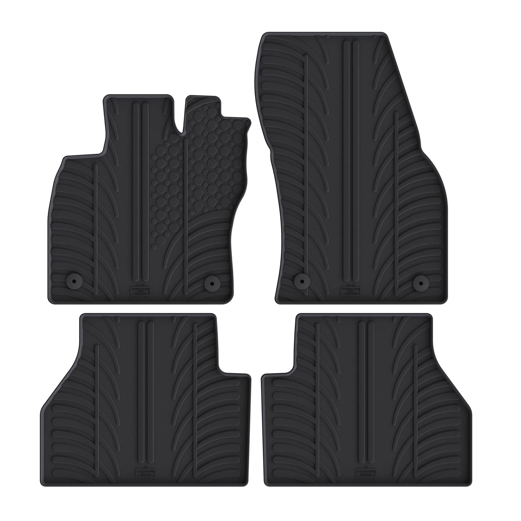 Unsere strapazierfähigen Gummifußmatten schützen Ihr Fahrzeug nicht nur vor verschütteten Flüssigkeiten, sondern bewahren auch dessen Wert und sorgen für einen sauberen und gepflegten Innenraum. Die rutschfeste Rückseite sorgt für sicheren und bequemen Sitz.